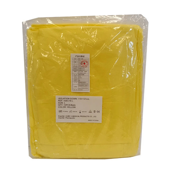 Pharmacy Go Medical Isolation Gown, AAMI Level I, Fluid Resistant, Disposable, Open Back Tie, Polypropylene, Latex Free, Size: Large, Yellow, Pack of 10